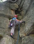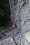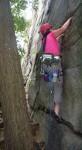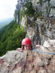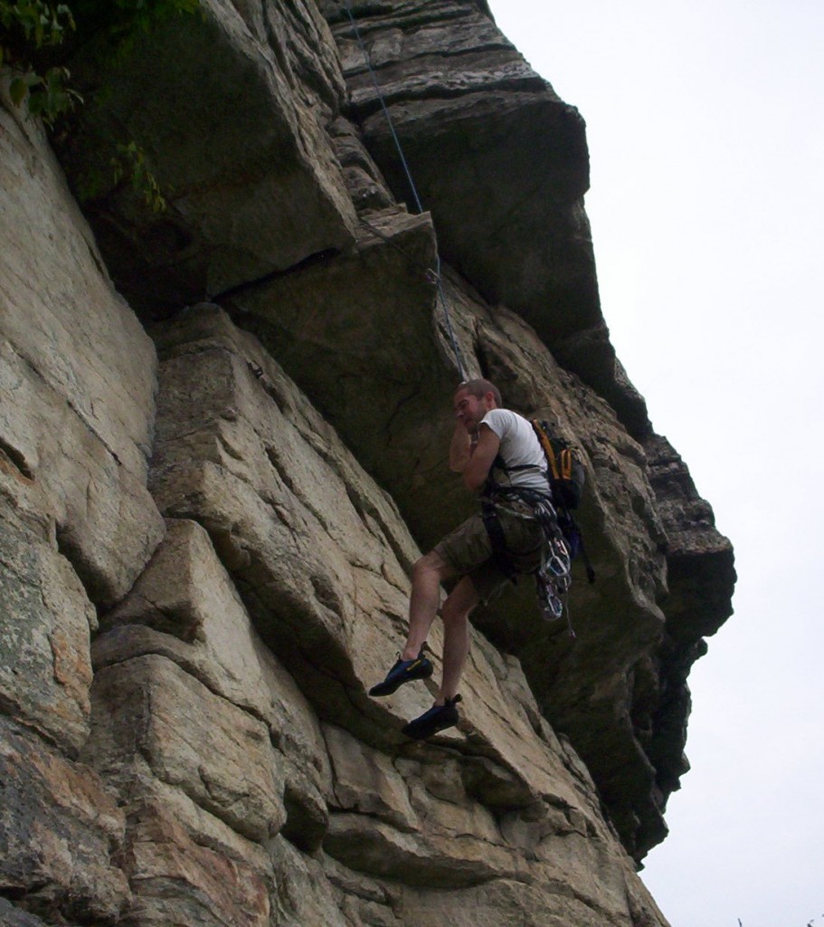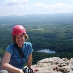 I asked Cathy what her favorite route was and she picked rapping Madame G’s in the freak hail storm. Yeah, it was memorable. We were finishing Madame G’s as the thunder got serious. We knew we needed to get down fast or get soaked, but I’d assured Cathy that people didn’t die from lightning strikes at the Gunks and the worst that would happen was we’d get wet. The occasional bolt of lightening touching down in the valley below was saying otherwise.