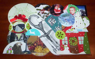 Last year I made my first placemat out of Christmas cards. I got another beautiful hand drawn card from K again this year so I added to my collection. I think I need to make more friends though because it’s tough to accumulate enough cards for even one placemat per year. This one includes a card from my car insurance company.