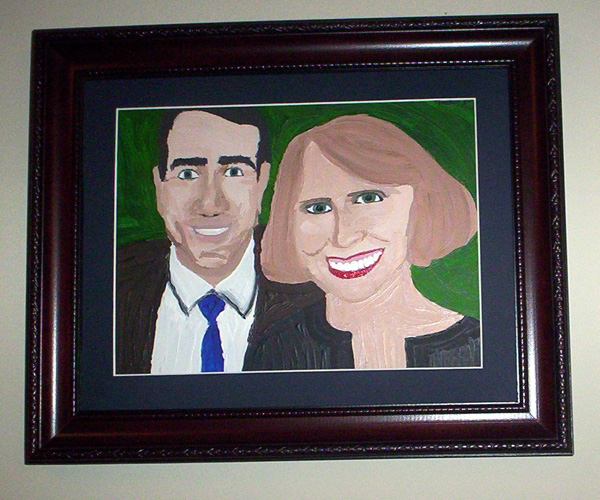 I got some lovely hand made presents for Christmas this year. Here’s a portrait Tara painted of me and Steve. She really captured my cheekbones.