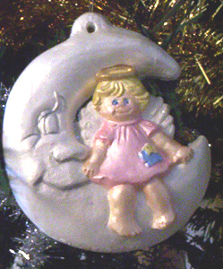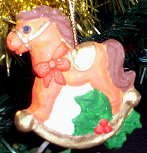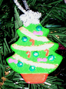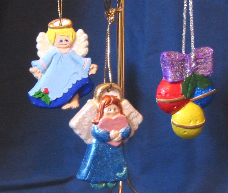 These were my salvation when I quit smoking. I’d already gotten into painting and decorating with glitter these plain white plaster ornaments that are sold in craft stores everywhere around Christmas-time. I realized that I could work on them for hours without hardly thinking about smoking, so when I quit I spent a lot of time on this project. I have dozens of them probably and even more that aren’t painted yet but are waiting for next year. I have pots and pots of paint and flourescent paint and metallic paint and pearlized paint and every kind of glitter. It’s like being a kid during crafts hour again.