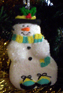 This last snowman is from a kit. The kit was my first introduction to painting plaster ornaments and I enjoyed it so much I went out and bought dozens of others to paint.