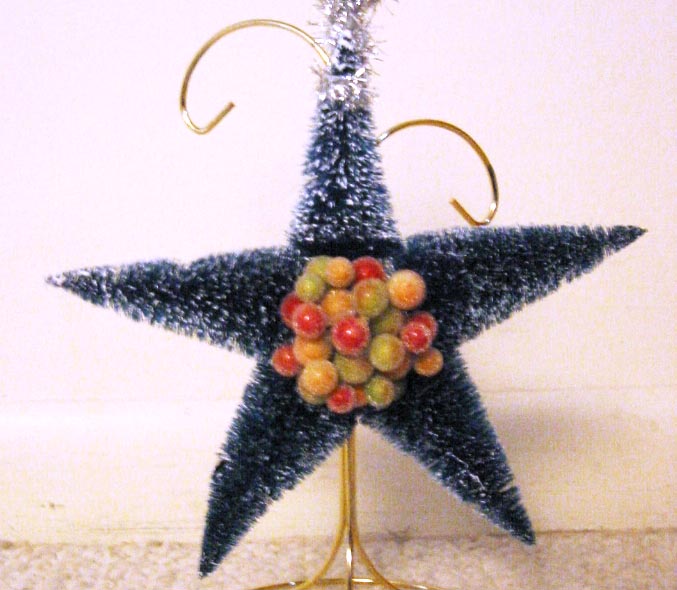 I got this idea out of a book. Hideous isn’t it? It’s huge for one thing. So I went back and looked and it’s meant to be a tree topper, not an ornament. But that only makes it slightly less hideous. I don’t have a good tree topper but it’s not going to be this one either. I’ll make something some day.