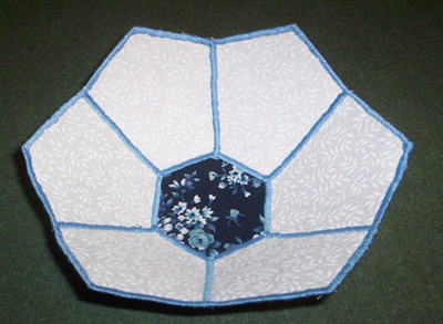 Another variation of the hexagon shape where you use a circle on the outside but a hexagon on the inside and cut the darts as for a hexagon. As you can see, these really do reverse although most of them look better one way than the other.